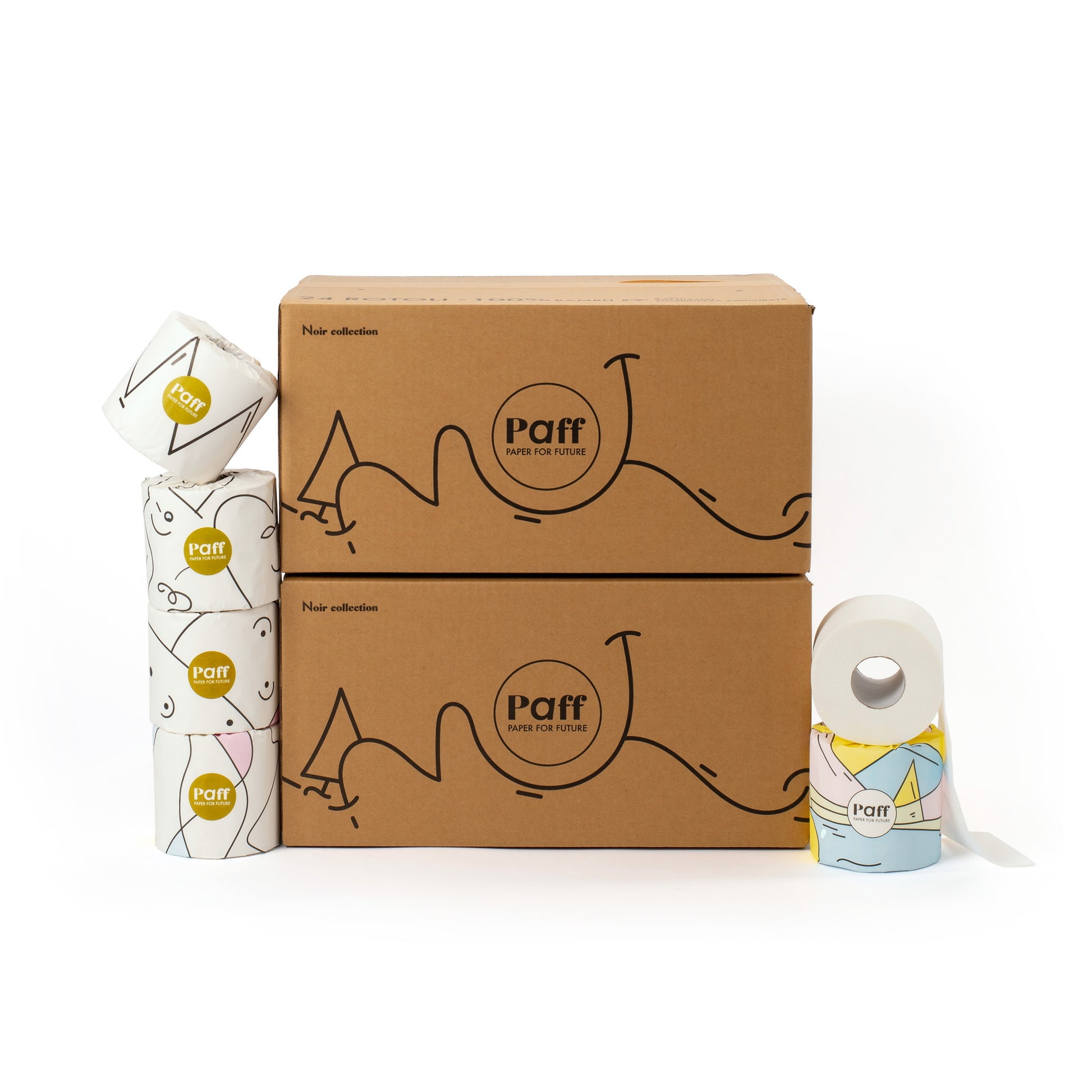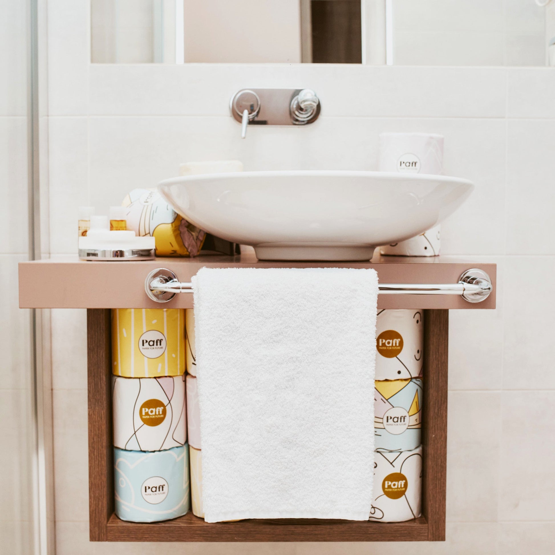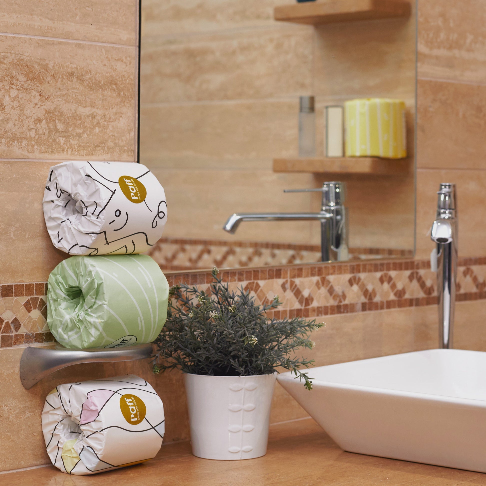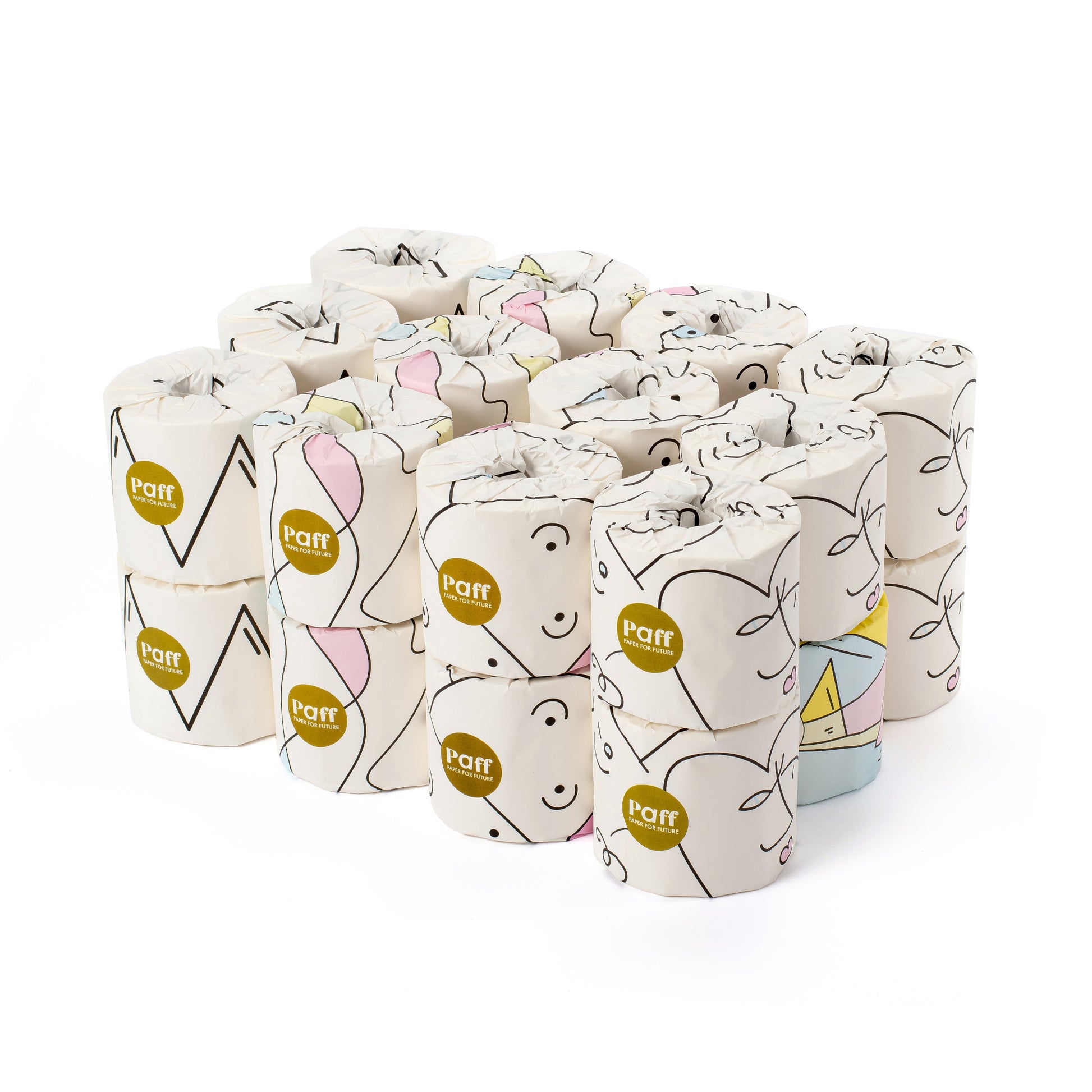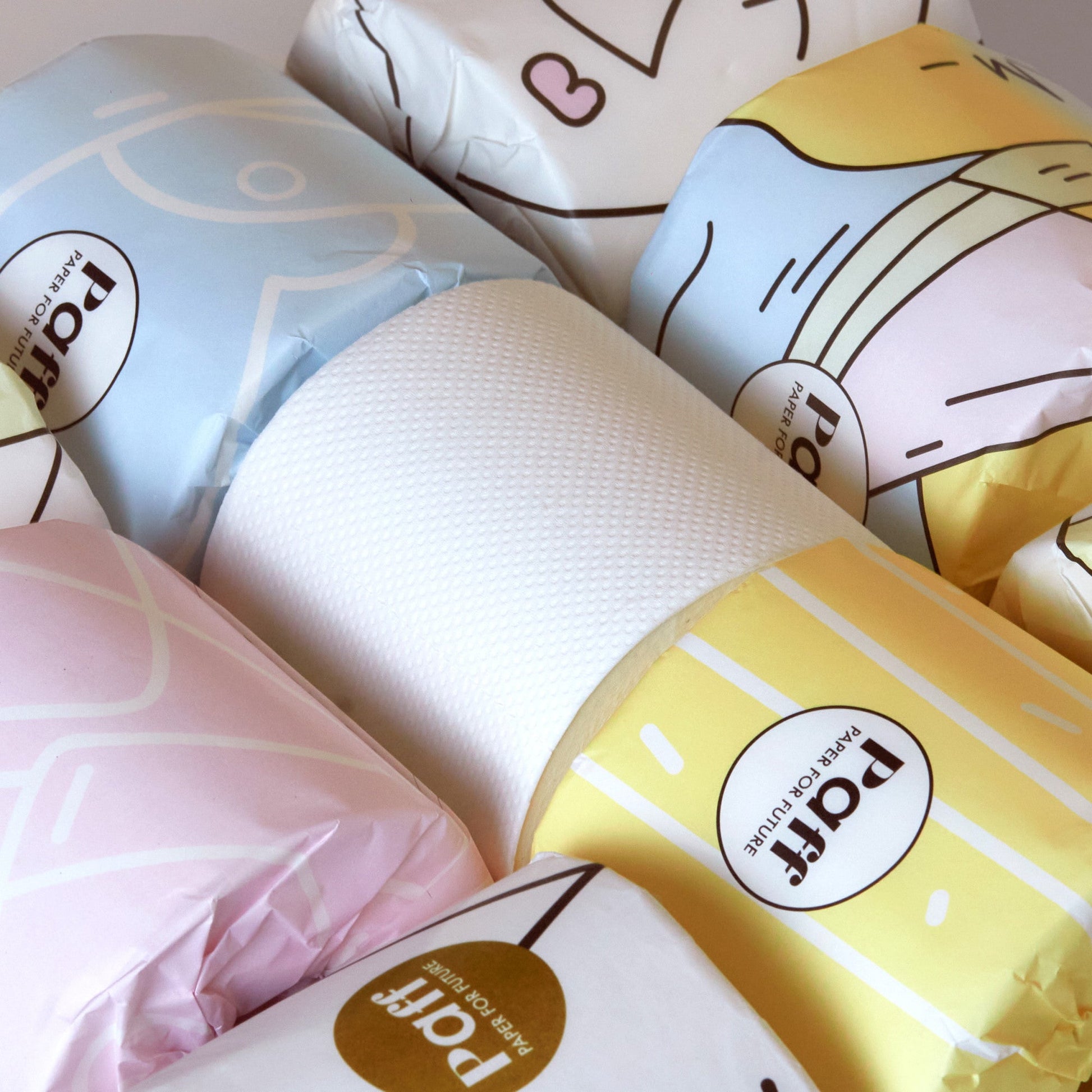 La carta igienica Paff, realizzata in cellulosa di bambù sostenibile, è morbida, resistente, anallergica ed eco-friendly, e grazie al packaging in veline colorate progettate da artisti, diventa anche un elemento di stile per il tuo bagno, con ogni rotolo incartato in materiali plastic-free.